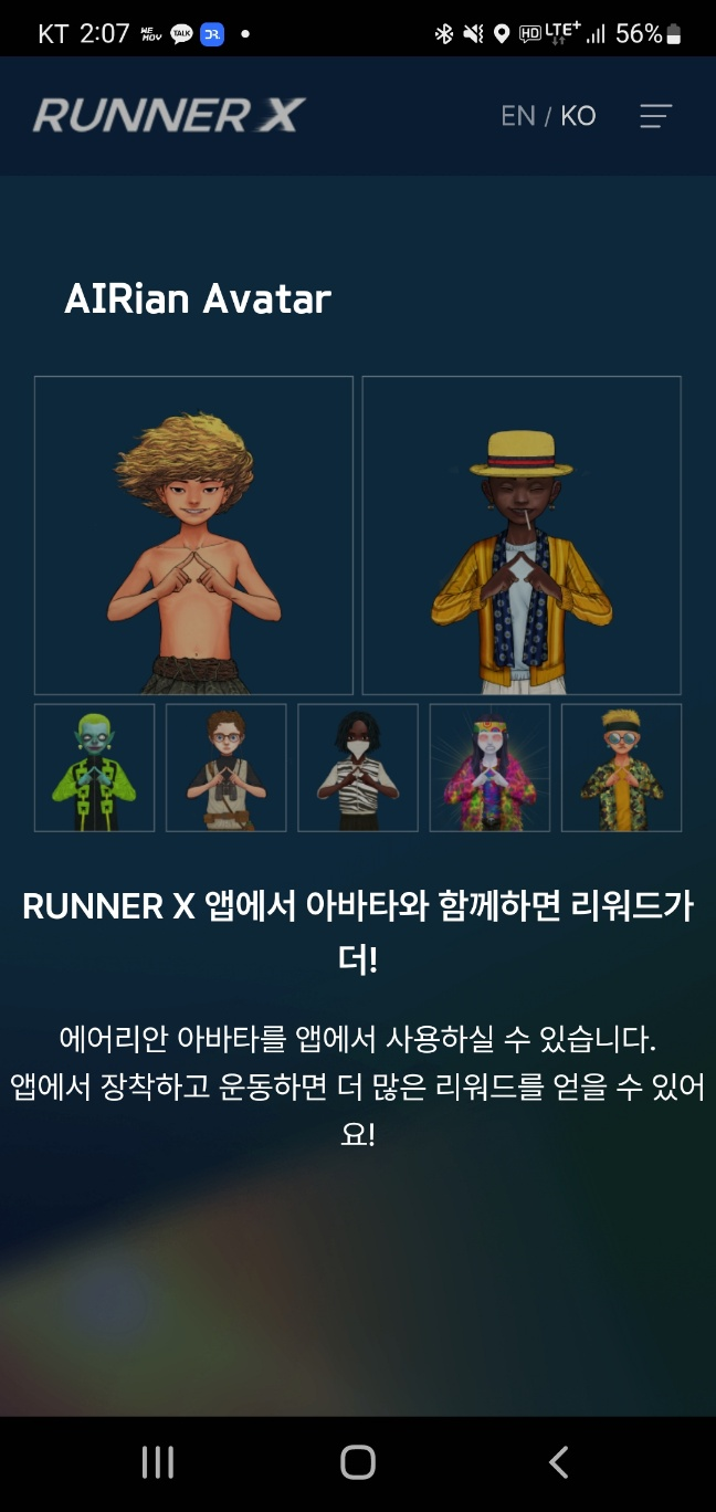 D-run 때부터 계속 하고 계신 분들 중 NFT를 보유하고 있는 경우 오른쪽 상단의 AIR 코인을 별도로 획득 할 수 있는 것으로 알고 있고, 조만간 Runner X의 NFT인 아바타 서비스가 조만간 오픈 예정이라고 합니다.