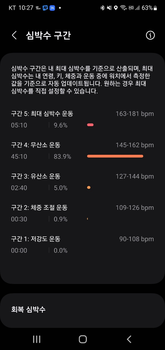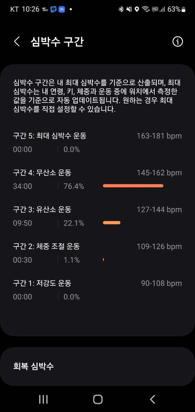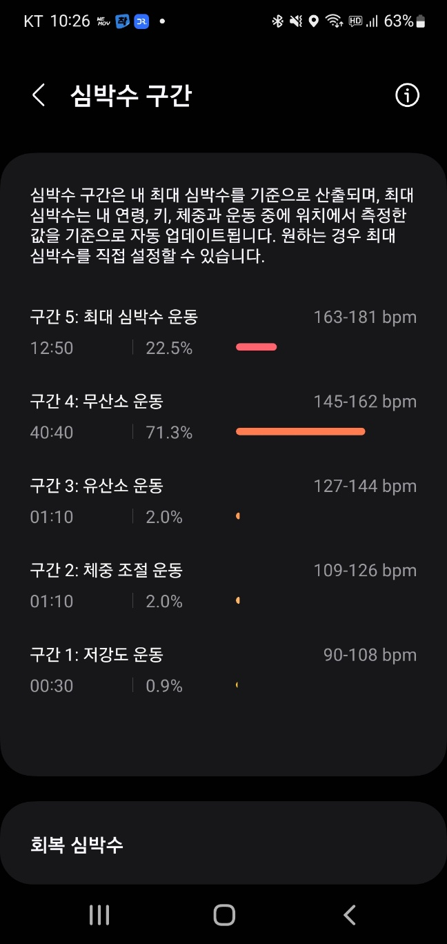 이렇게 심박수에 따라서 유산소와 무산소 운동을 구분할 수 있는 걸 이제서야 알게 됐습니다.