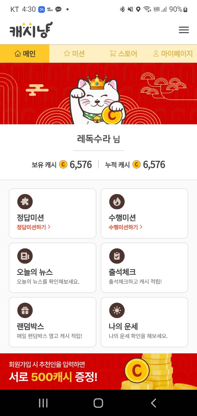 캐시냥 (추천인: 레독수라)