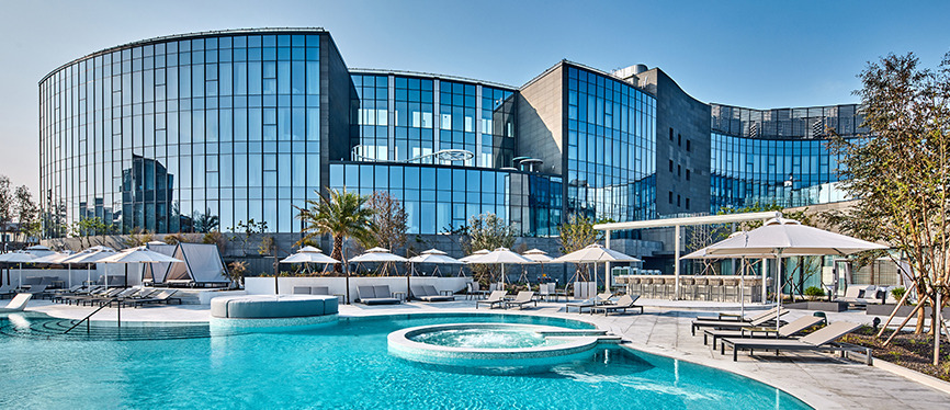 수영장이 투숙객들을 위한 공간이라고는 하지만 외부인도 받고 있는 상황이라면,