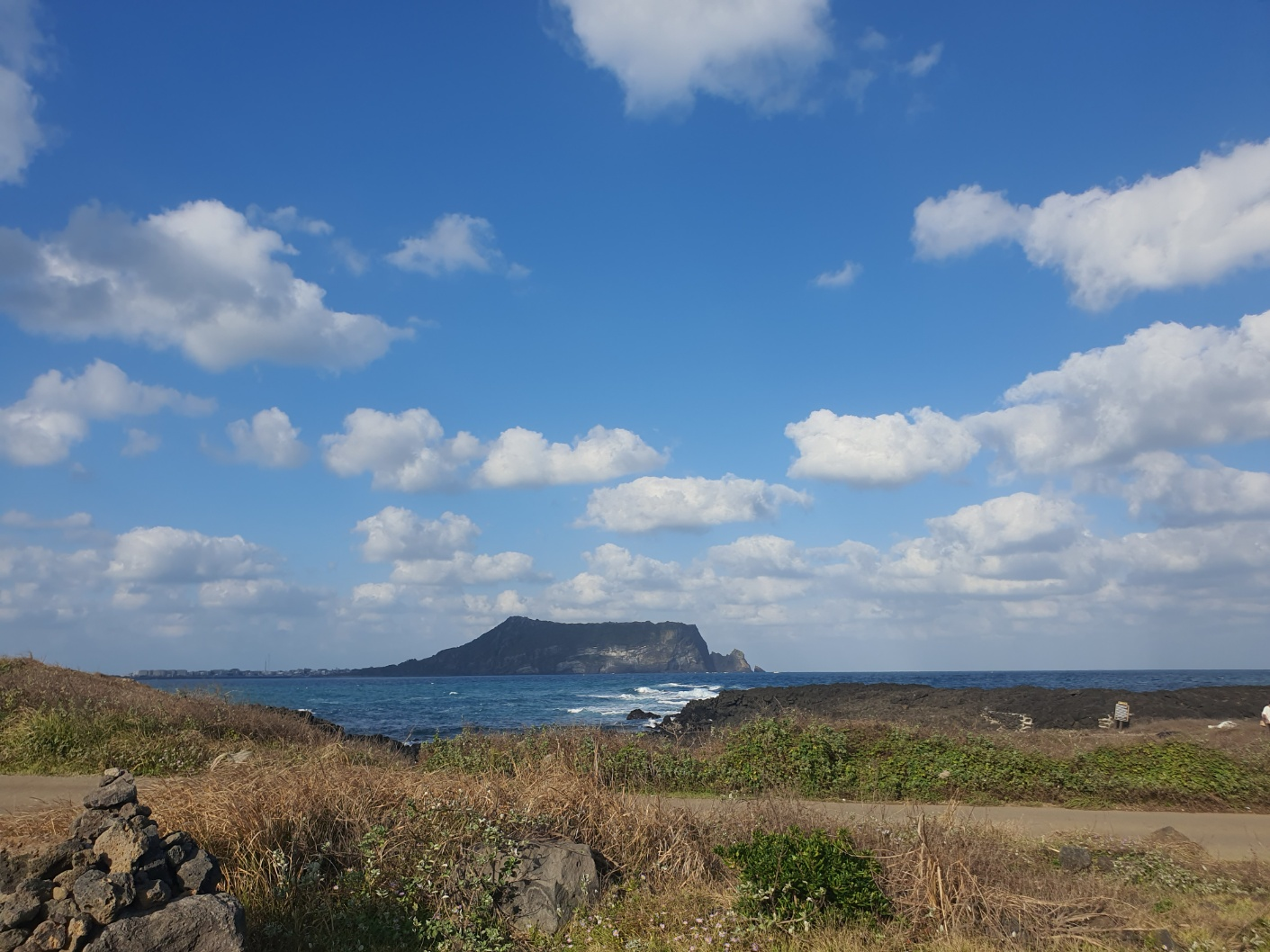 하늘이 정말 이뻐서 일출봉을 배경을 사진 찍기에 너무 좋았습니다.