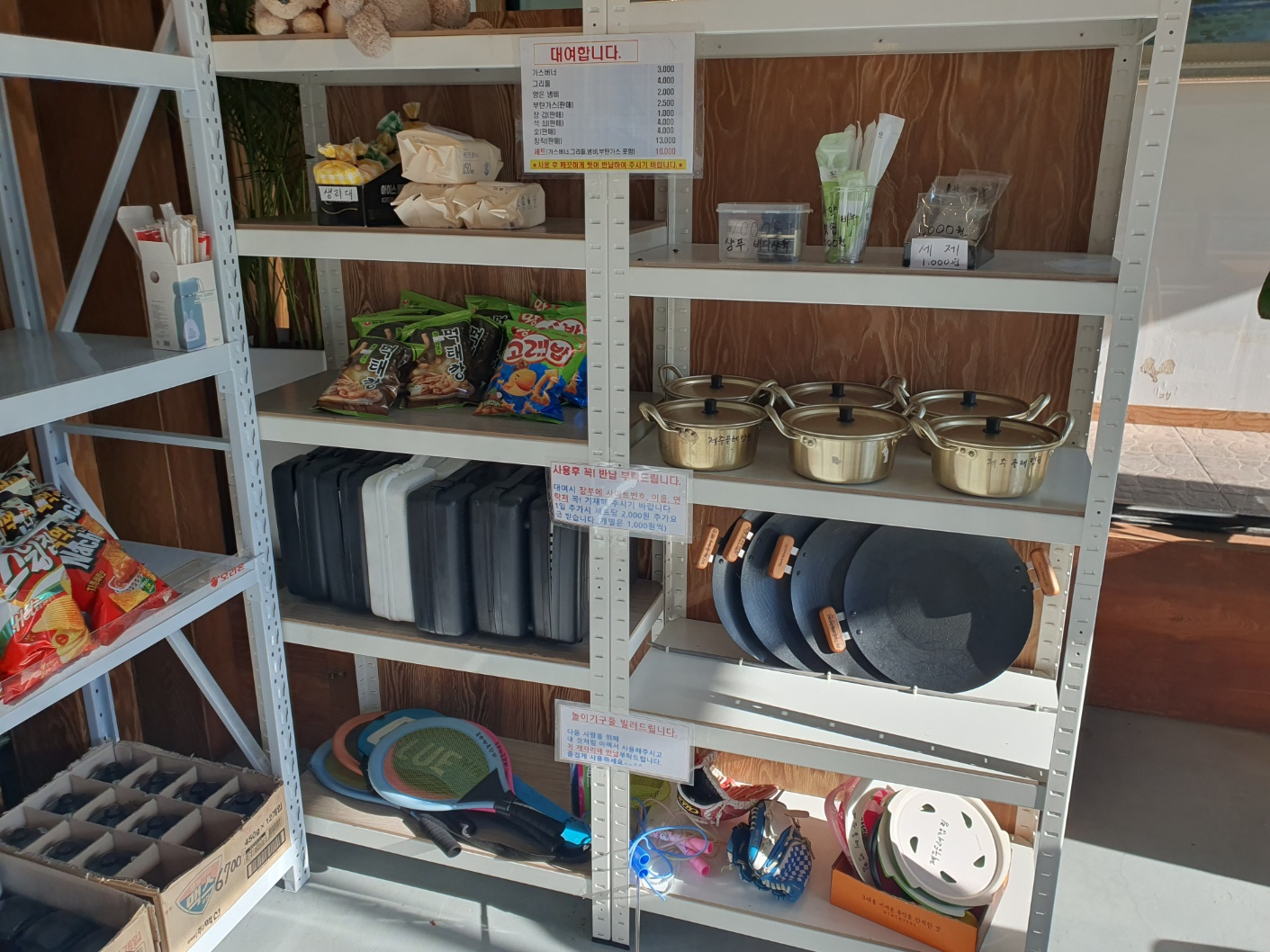 관리사무소 내부에는 매점이 있고 한켠에는 버너와 그리들, 냄비 등도 대여할 수 있게 준비가 되어 있었습니다.