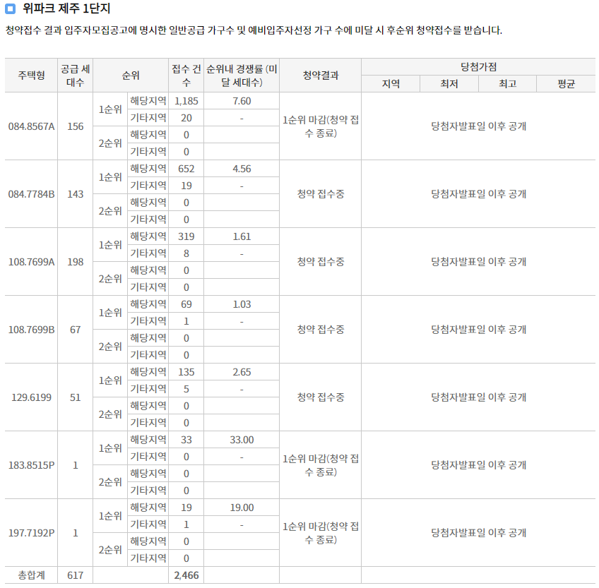 해당지역 청약 결과만도 최고 6.14대 1의 결과가 나온걸 보면 도민들의 관심도를 알 수가 있었습니다.