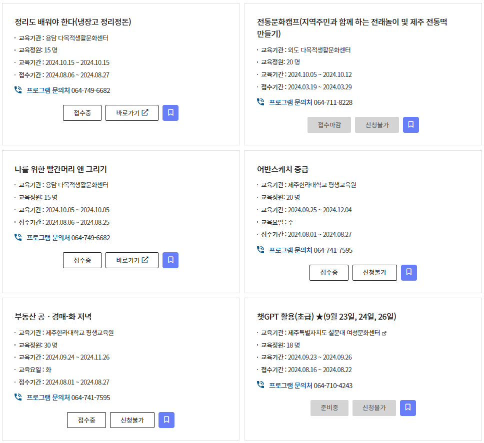 수강 지역도 제주시, 서귀포시로 구분해서 확인이 가능한 것도 괜찮아 보이긴 했습니다.