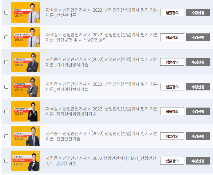저는 산업안전기사를 내년에 취득하고 싶어서 강좌를 살펴보니 다행히 목록에 있어서,