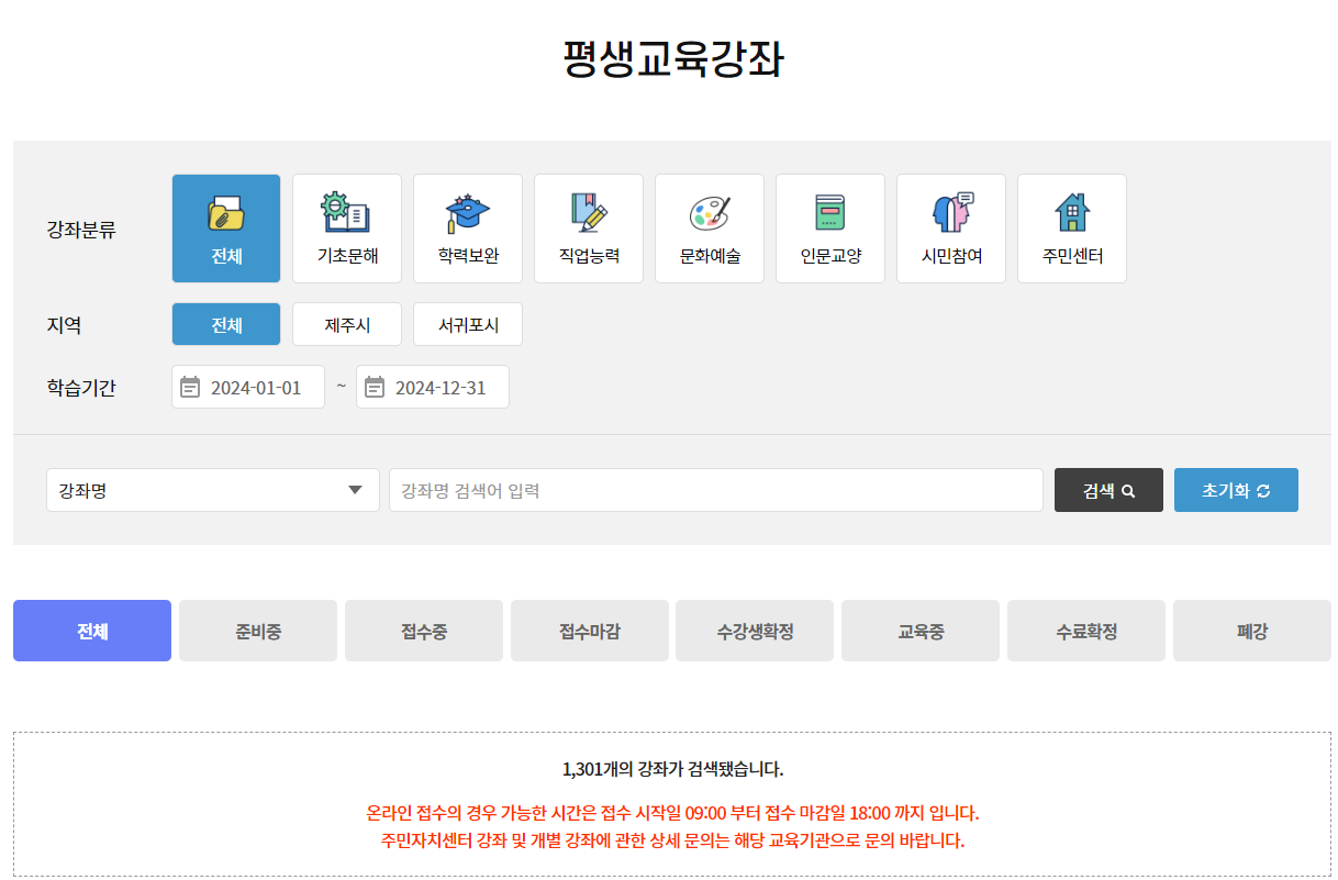 수강 지역도 제주시, 서귀포시로 구분해서 확인이 가능한 것도 괜찮아 보이긴 했습니다.