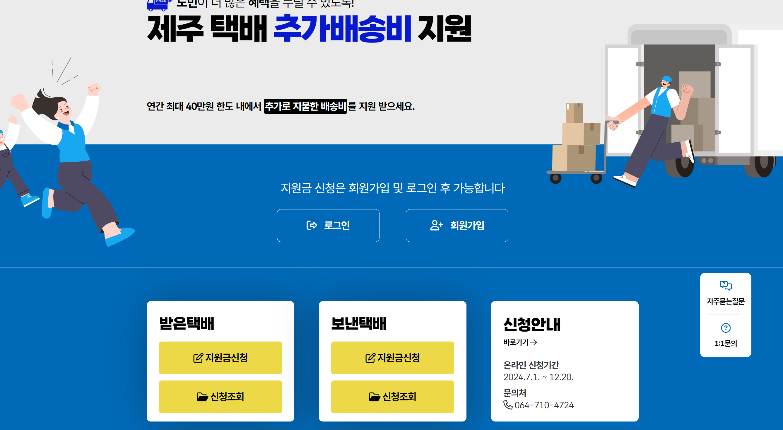 제주 택배 추가 배송비 지원 사업 - 연간 40만원 한도