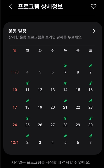 프로그램을 선택하면 운동 스케줄이 자동적으로 생성이 되고,