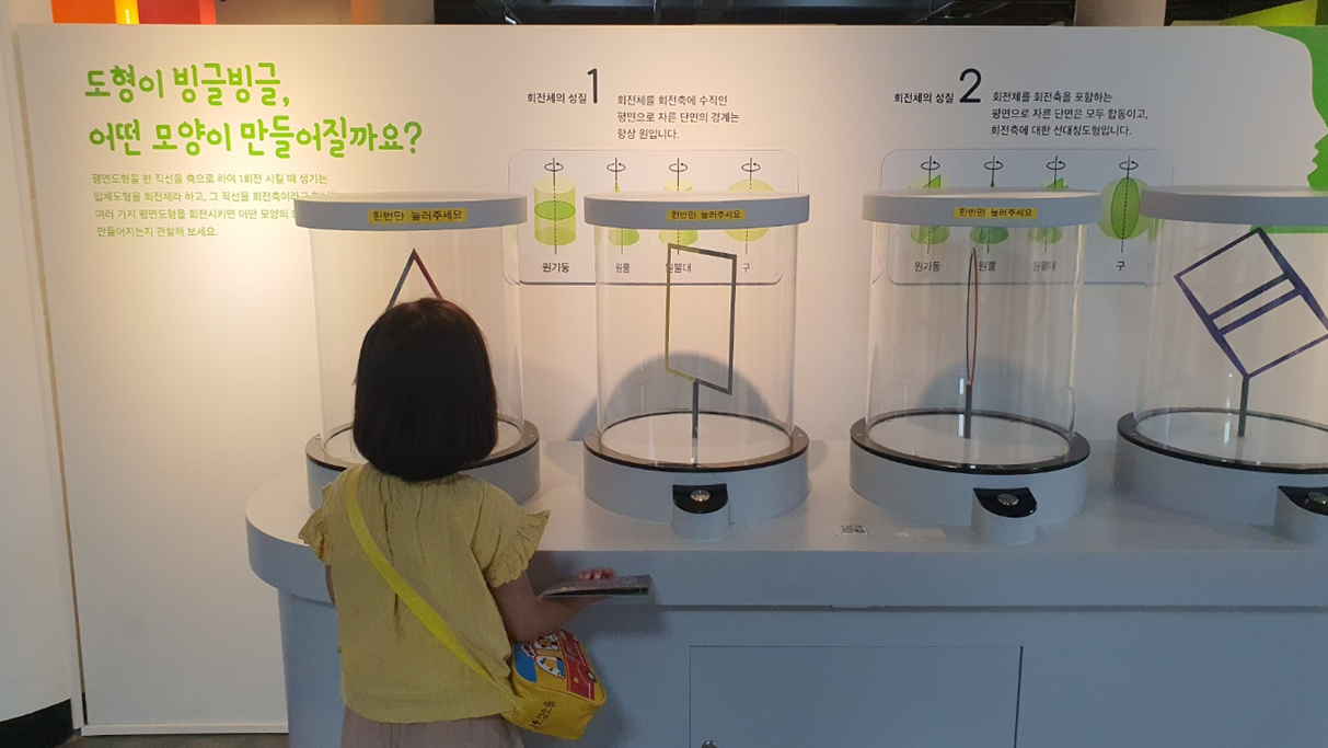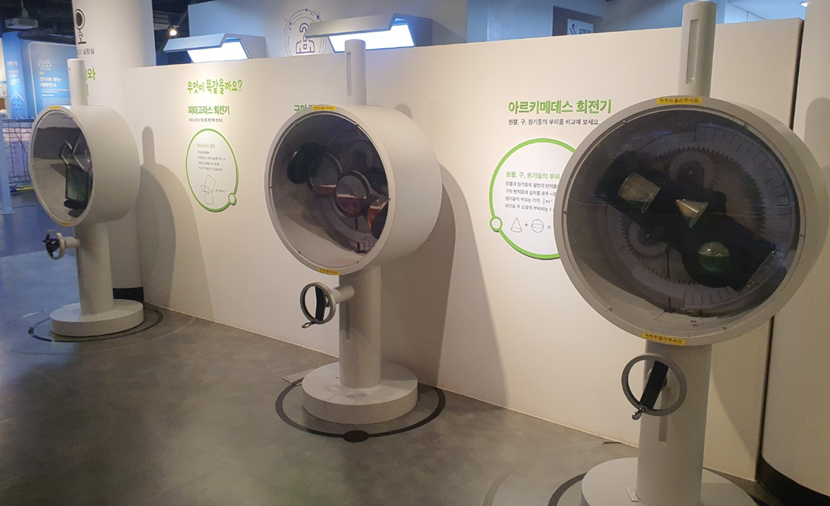 삼각형, 사각형 등의 회전체의 모습과 피타고라스의 정리를 보여주는 회전기는 예전 중학교 수학시간이 떠올랐고,